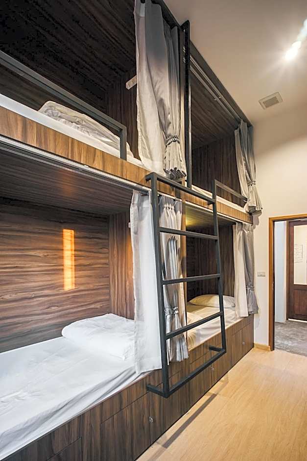 This bed in dormitory features a balcony, dining area and tumble dryer.